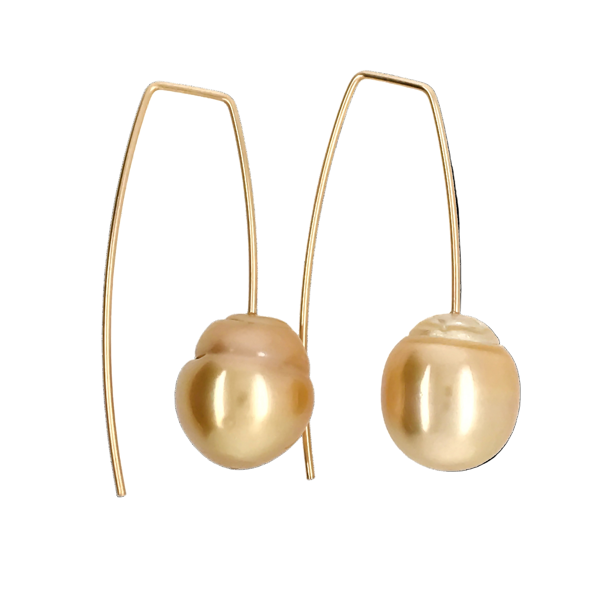 Elevate your jewelry collection with these exquisite baroque golden South Sea pearl hoop earrings. Each 13mm cultured pearl showcases the lustrous warmth and organic beauty characteristic of South Sea varieties, suspended gracefully from 14K yellow gold settings. The baroque shape adds distinctive character and movement, while the timeless hoop design ensures versatile elegance for both everyday refinement and special occasions. A sophisticated choice for those who appreciate fine pearls and enduring craftsmanship.