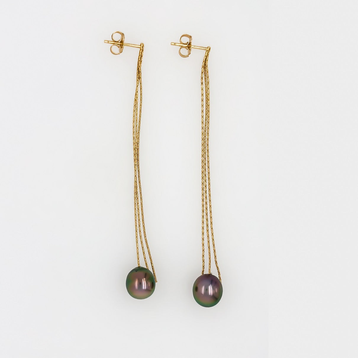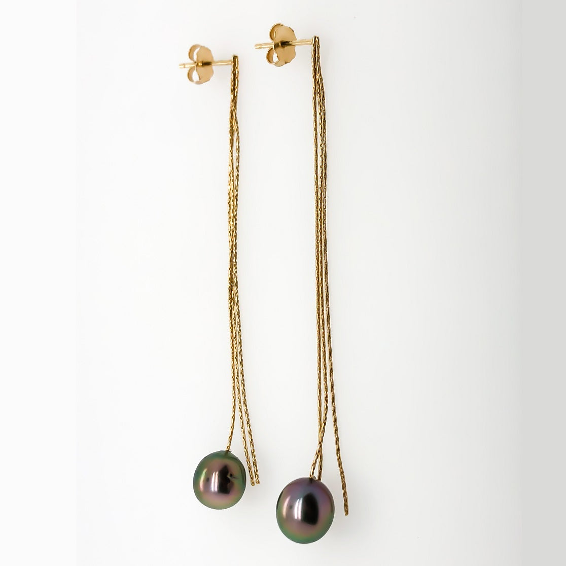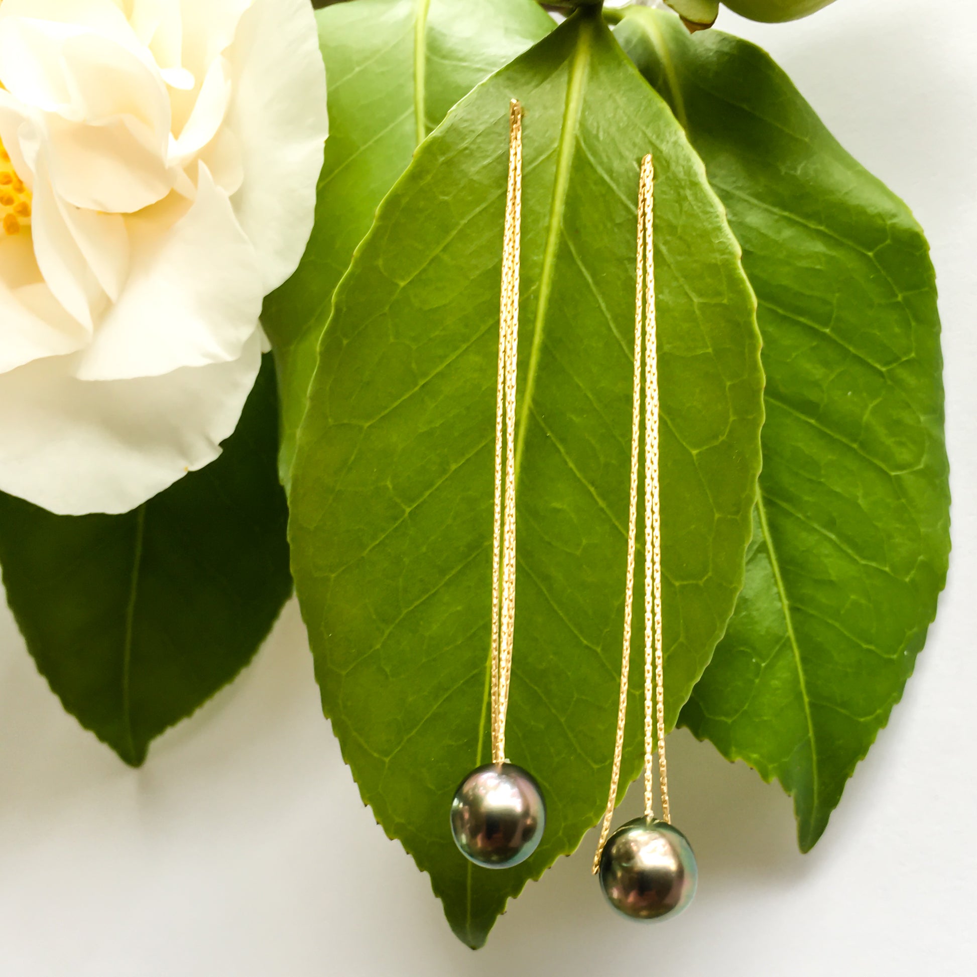 Elevate your elegance with these 8mm Tahitian saltwater cultured pearl earrings, beautifully set in 14K yellow gold. The delicate tassel dangle design adds a refined movement, perfectly blending classic sophistication with modern flair. Ideal for adding a touch of timeless luxury to any ensemble.
