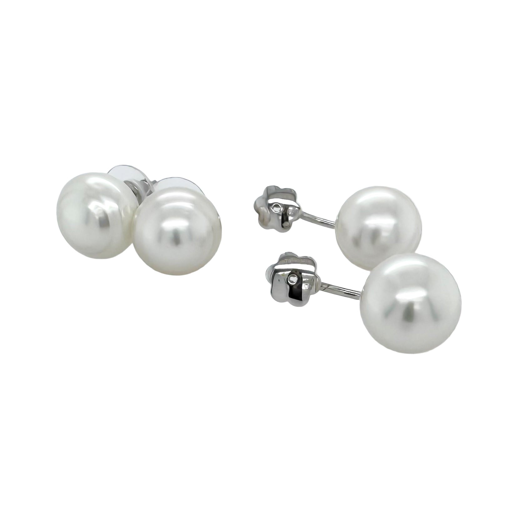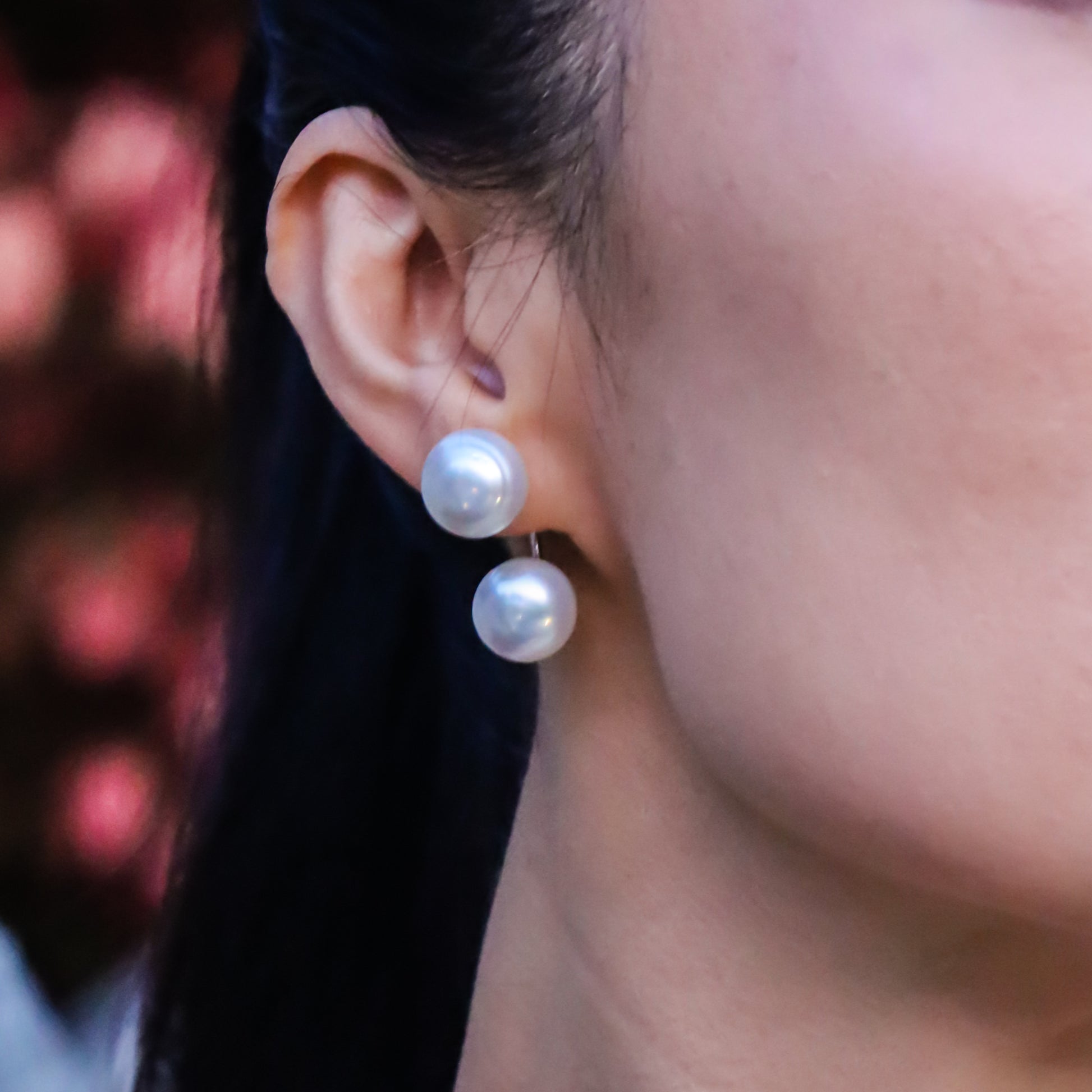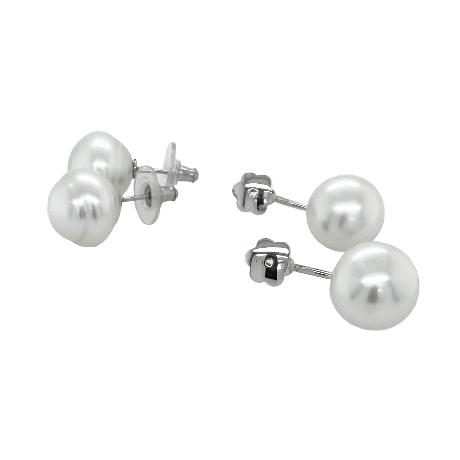 Elevate your everyday elegance with these baroque South Sea pearl studs, showcasing the natural luminosity and organic beauty of 12.8-13.3mm cultured pearls. Crafted in sterling silver, these versatile earrings feature interchangeable jackets that allow you to transform your look effortlessly. The lustrous baroque pearls, cultivated in pristine saltwater environments, offer a distinctive character that complements both classic and contemporary styles. Perfect for those who appreciate timeless sophistication with an artistic edge.