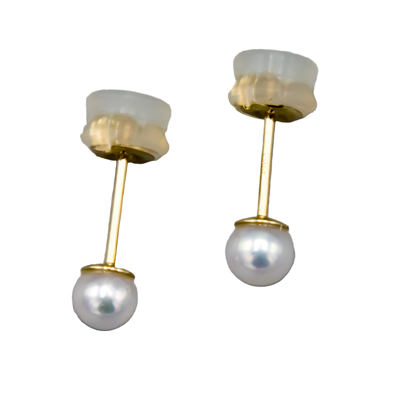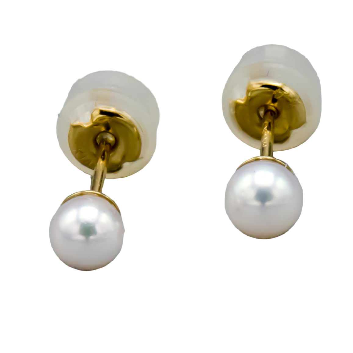 Elevate your everyday elegance with these refined Akoya pearl studs. Featuring lustrous 5-5.5mm cultured pearls set in 14K yellow gold, these timeless earrings offer a sophisticated touch that transitions seamlessly from office to evening. The warm glow of yellow gold complements the pearls' natural radiance, creating a piece that embodies classic luxury and understated grace.