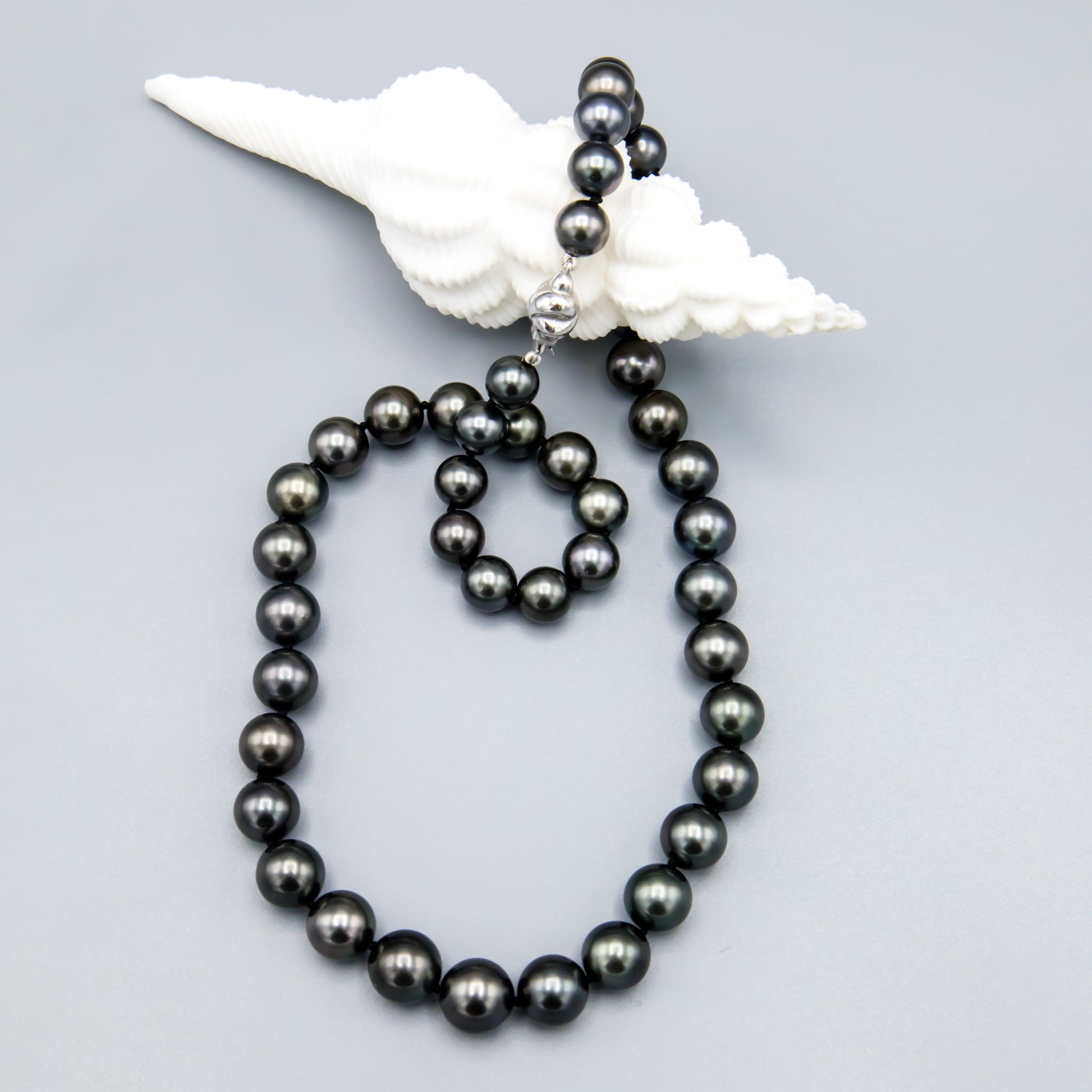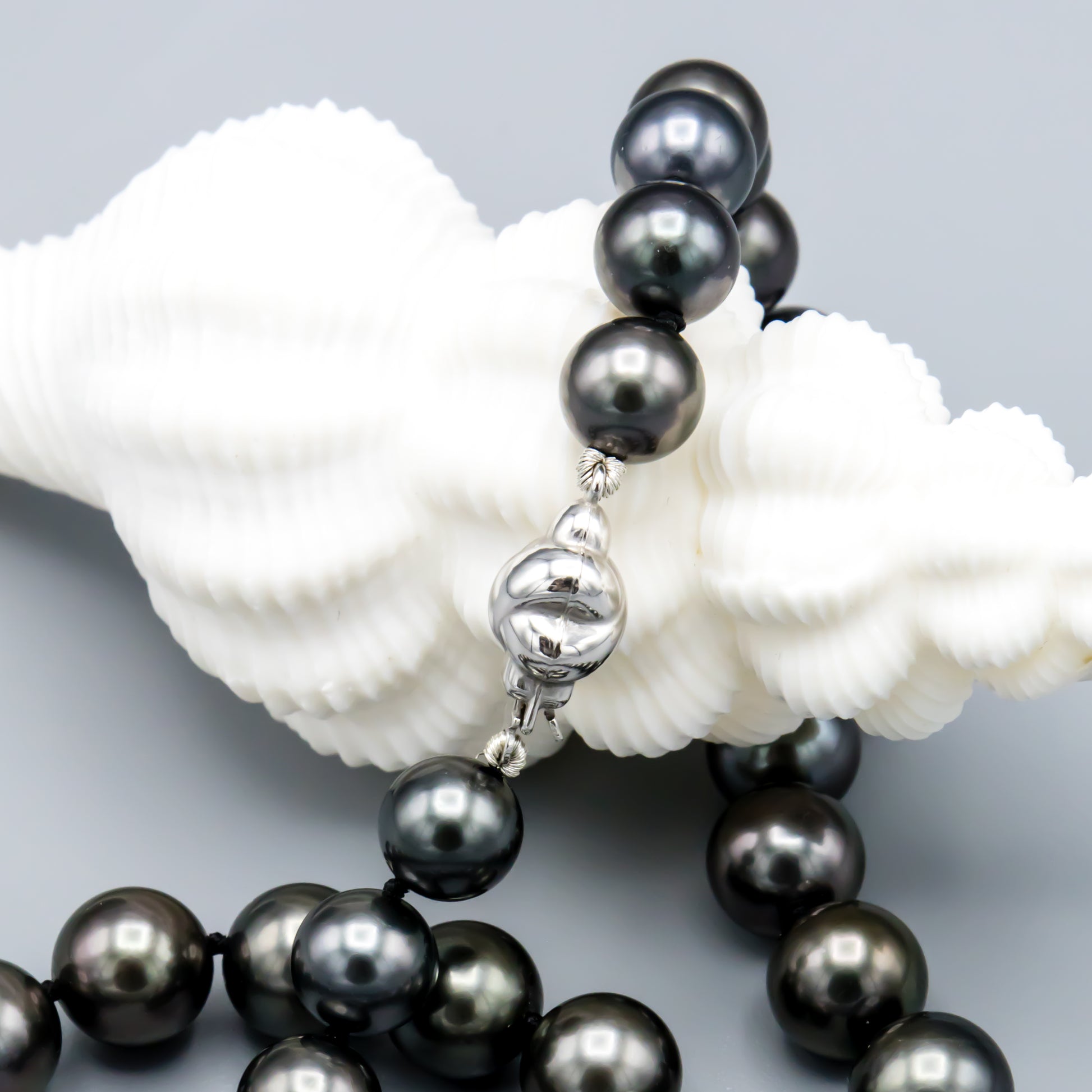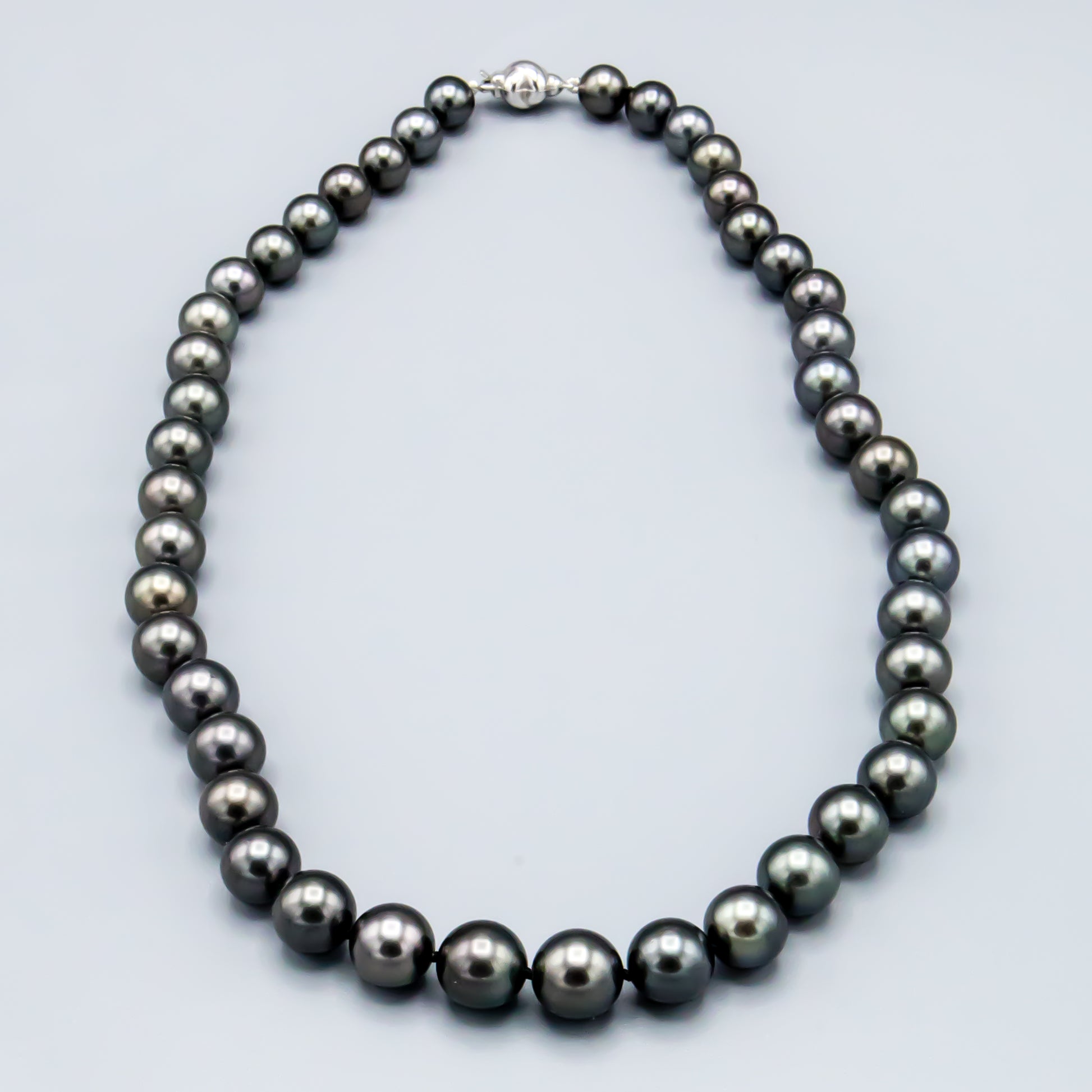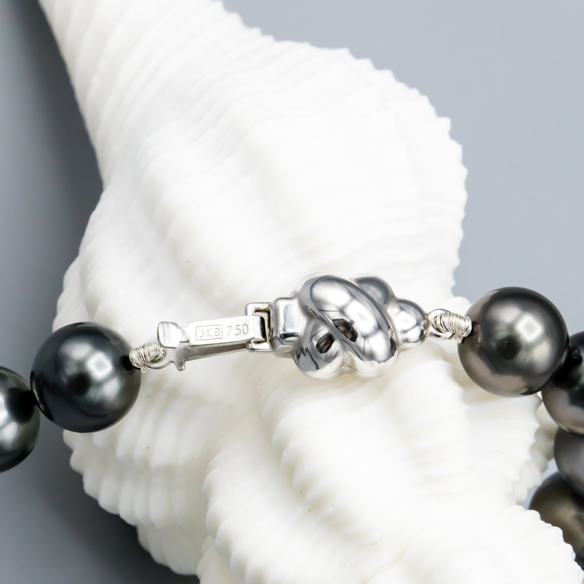 Discover timeless elegance with this stunning Tahitian pearl strand, showcasing lustrous 8-10.5mm saltwater cultured pearls in captivating dark tones. At 18 inches, it drapes gracefully for refined everyday wear or formal occasions. The 18K white gold clasp provides both security and understated luxury, perfectly framing these naturally beautiful gems. A distinguished addition to any discerning jewelry wardrobe.
