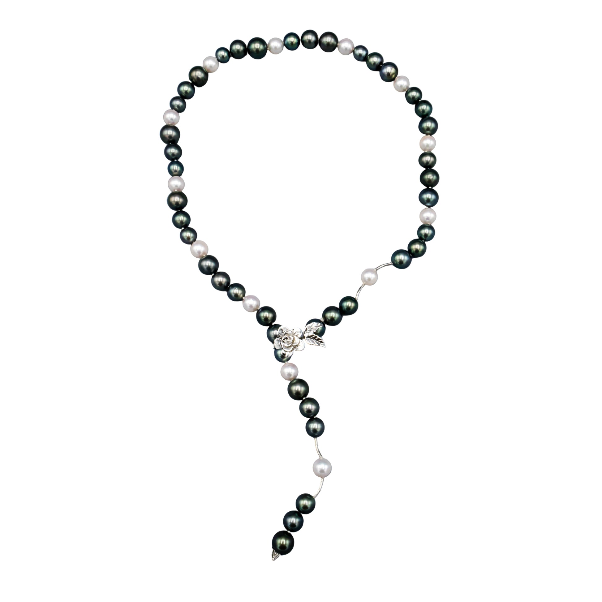Elevate your jewelry collection with this exquisite adjustable lariat necklace – a stunning fusion of Akoya and Tahitian pearls that transitions effortlessly from day to evening.