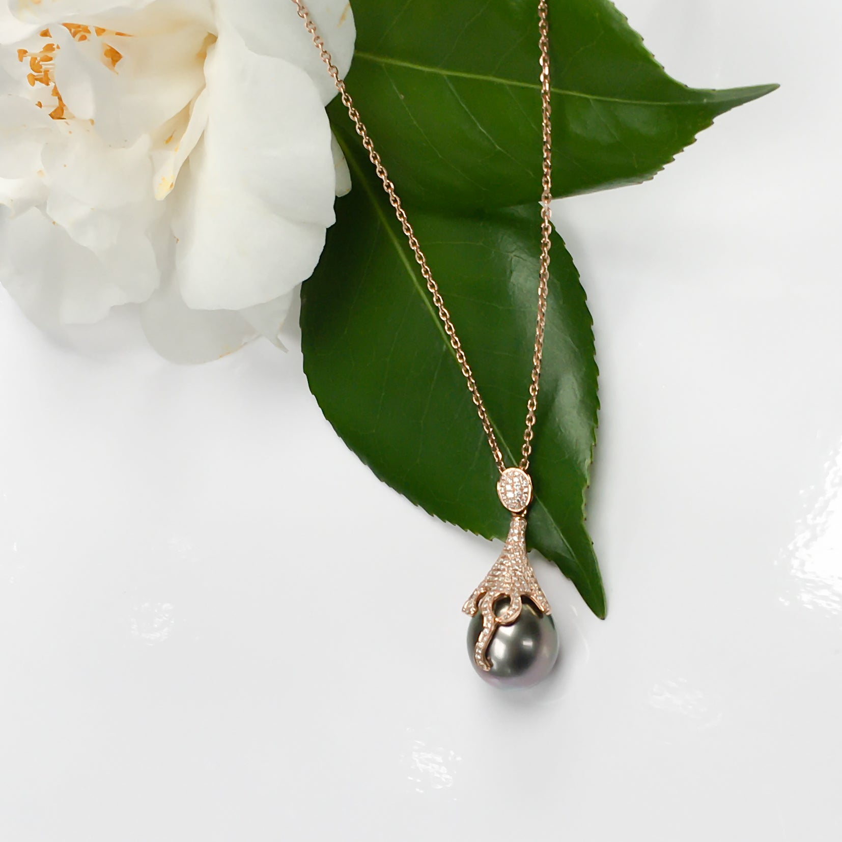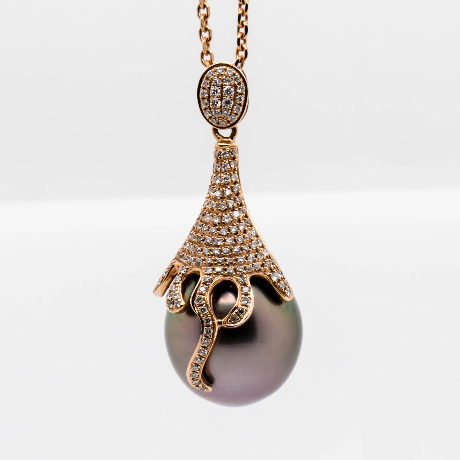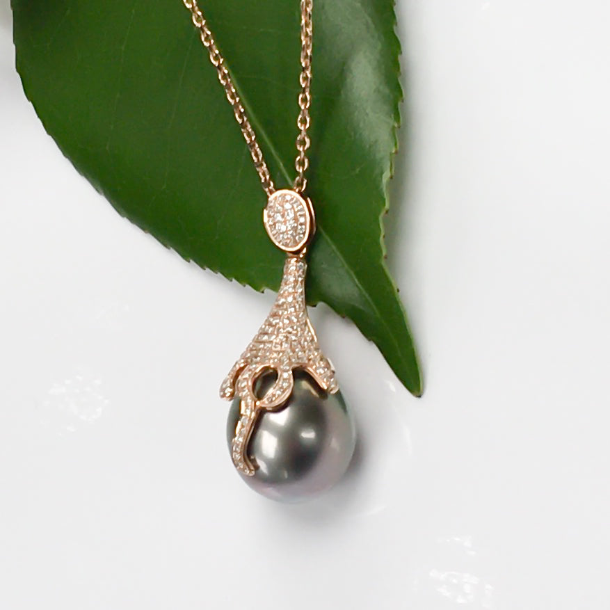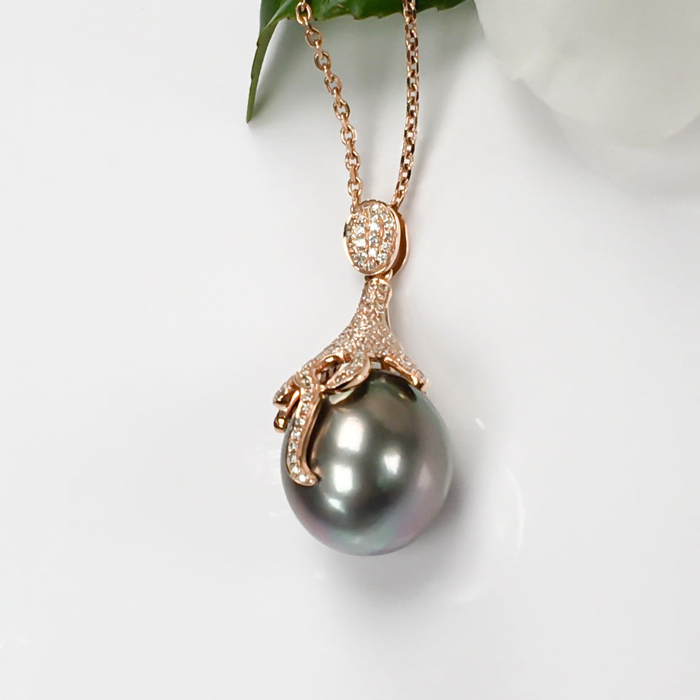 This elegant pendant features a striking 14.5mm Tahitian pearl suspended from a 14K rose gold setting, weighing 2.153g. The bail is adorned with 0.409ct of diamonds, adding refined brilliance to the piece. Perfectly blending timeless sophistication with modern luxury, this pendant makes a statement of understated elegance for any occasion. Please note, the chain is sold separately.