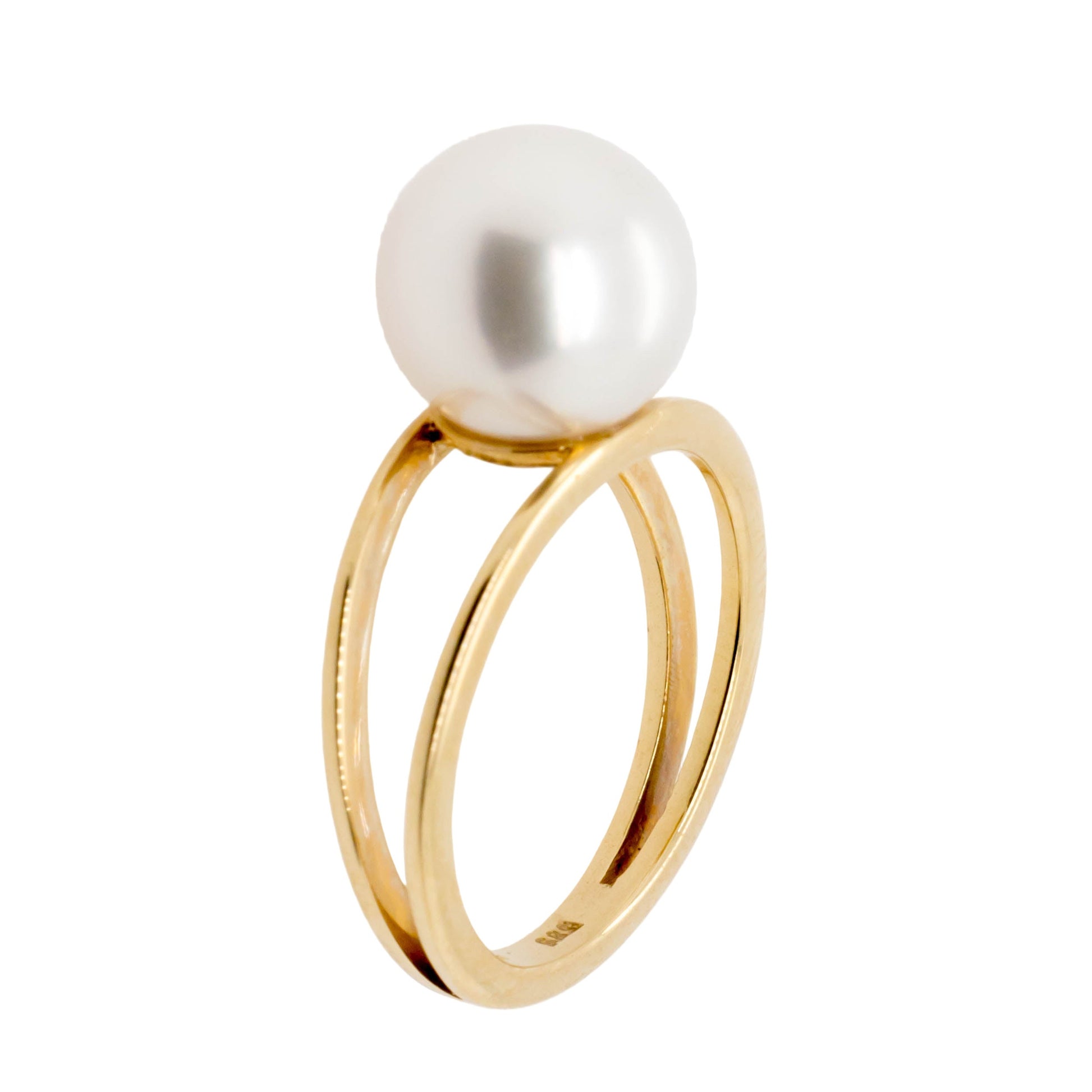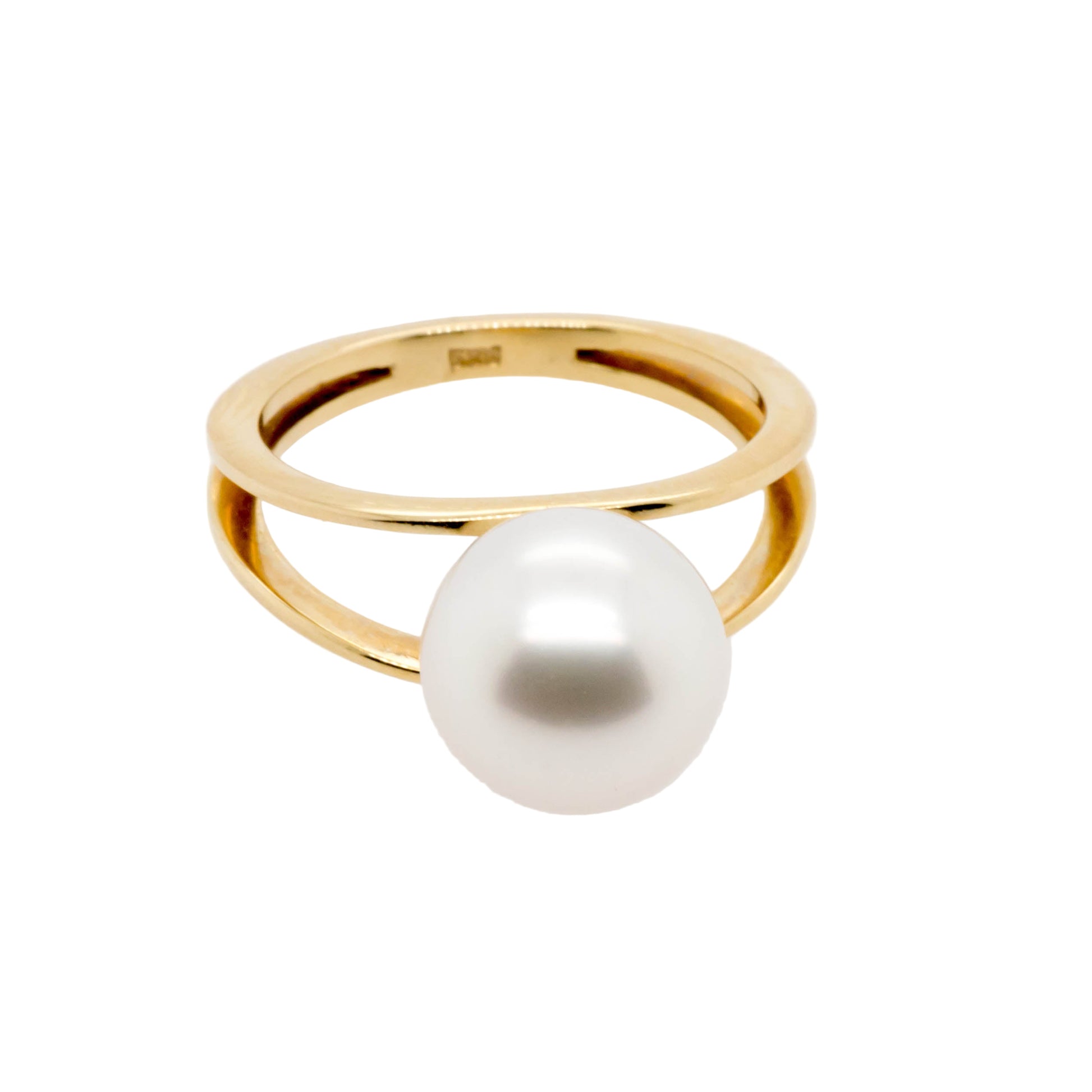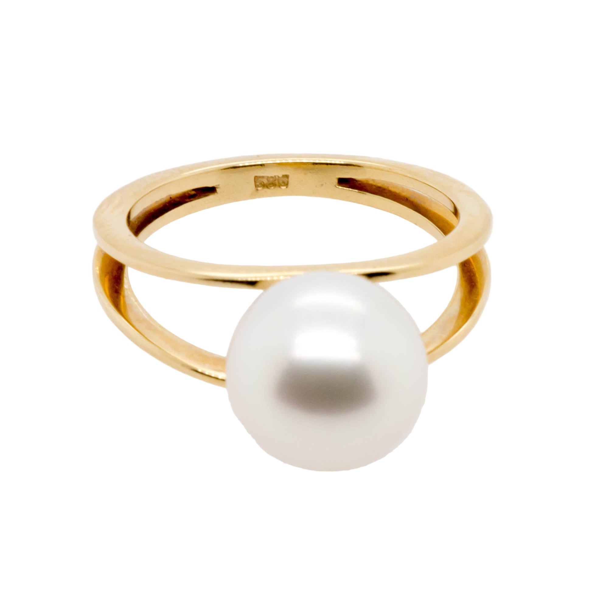 This exquisite ring features a lustrous 10.3mm round white South Sea saltwater cultured pearl set in elegant 14K yellow gold. Crafted for size 7, it combines timeless sophistication with exceptional craftsmanship, making it a refined statement piece for any occasion.